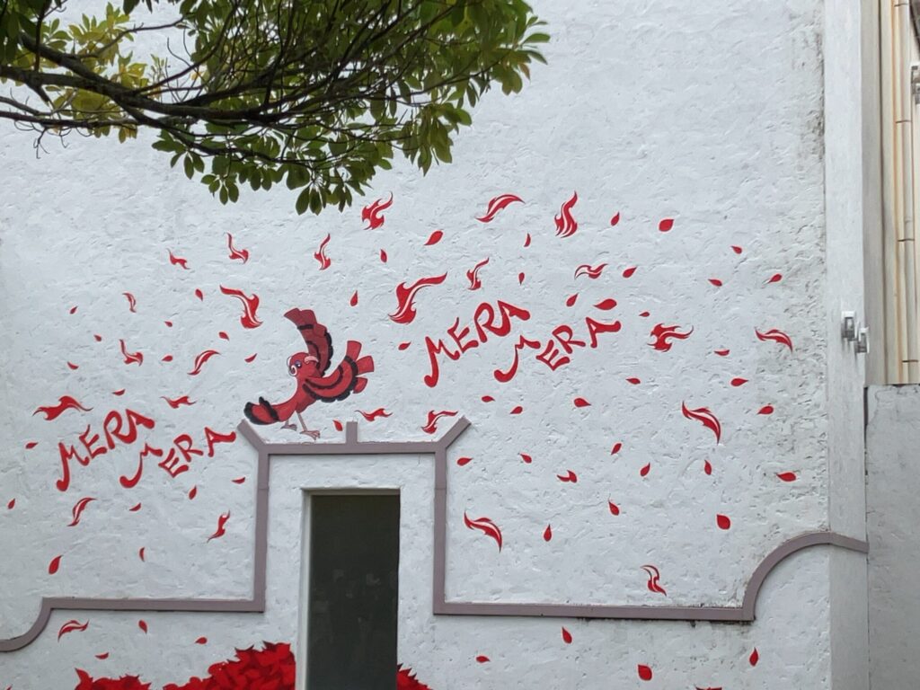 建物にはオドリドリのめらめらスタイルが描かれています。