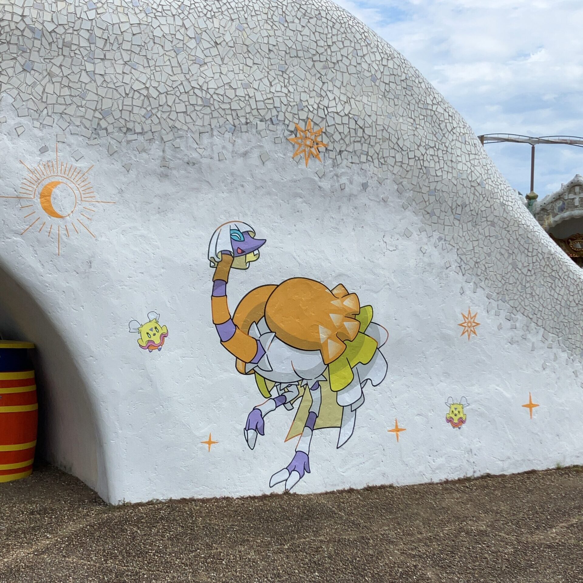フォトスポットに限らず、建物の壁にはポケモンが描かれています。